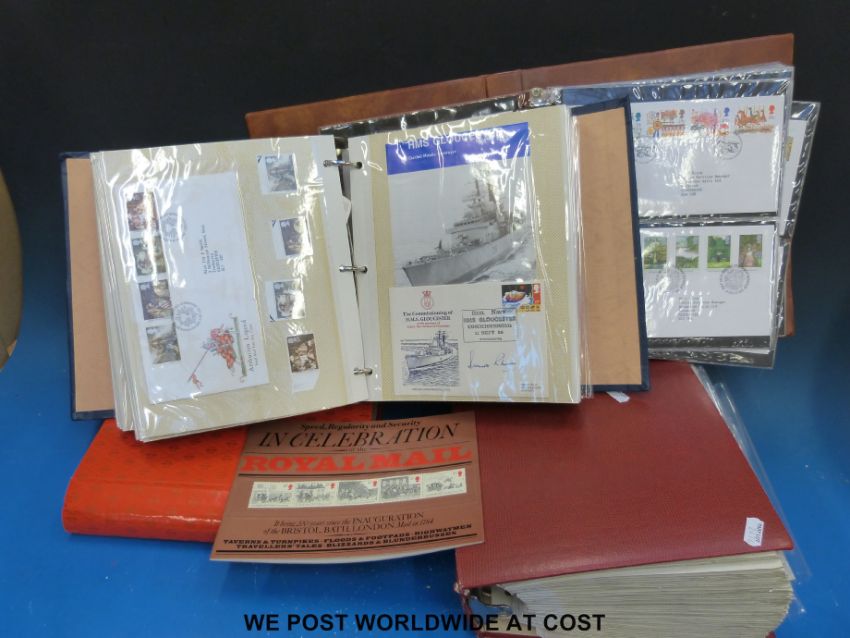 A large quantity of GB first day covers in four albums, together with some mint stamps and presentation packs