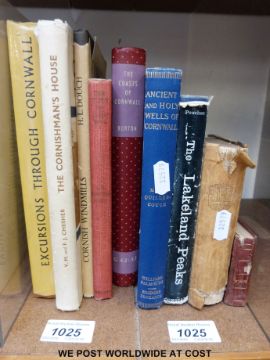 A collection of important works about Cornwall. Includes The Cornish Man's House, V.M & F.J Chester (Truro, D. Bradford Barton, 1968), H.L. Douch 'Cornish Windmills' (Truro, Oscar Blacklord, undated) signed by the author, M & L Quiller-Couch, Ancient and Holy Wells of Cornwall (London, Chas J. Clark, 1894), F.W.L. Stockdale, Excursions through Cornwall, 1824 (Truro, Bradford Barton, 1972) plus other books on Cornish topography