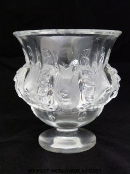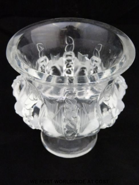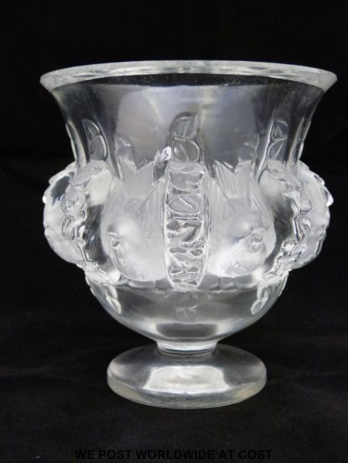 Lalique Dampierre pedestal glass vase in the form of eight robins amongst foliage (12cm x 11cm)