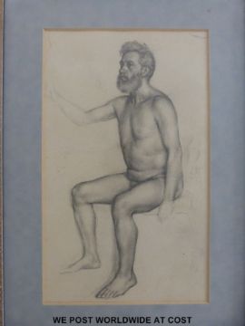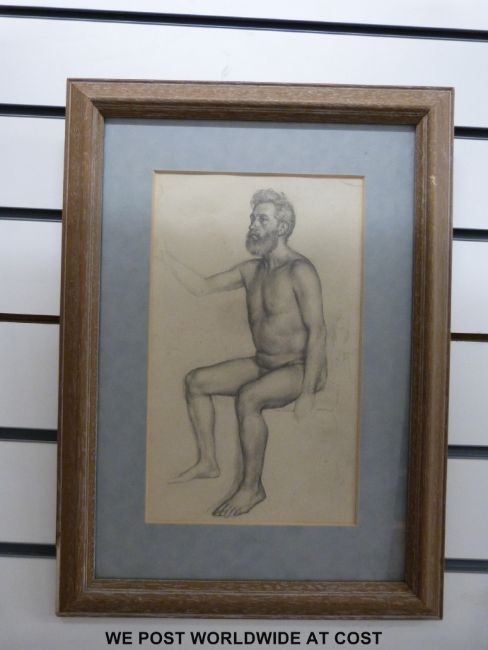 Victor Hulme Moody: Two pencil studies, one of a seated nude man (29.5cm x 18cm), both with details verso and labels of Malvern picture framers