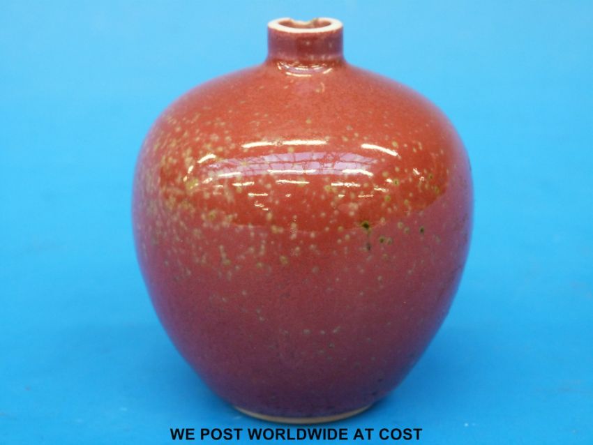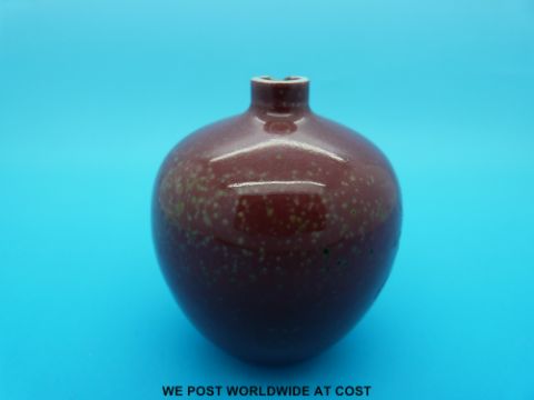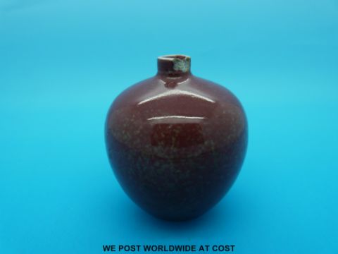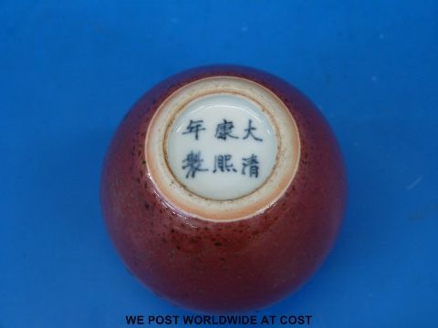 A Chinese flambe vase on bulbous form with Kangxi mark to base (7cm tall)