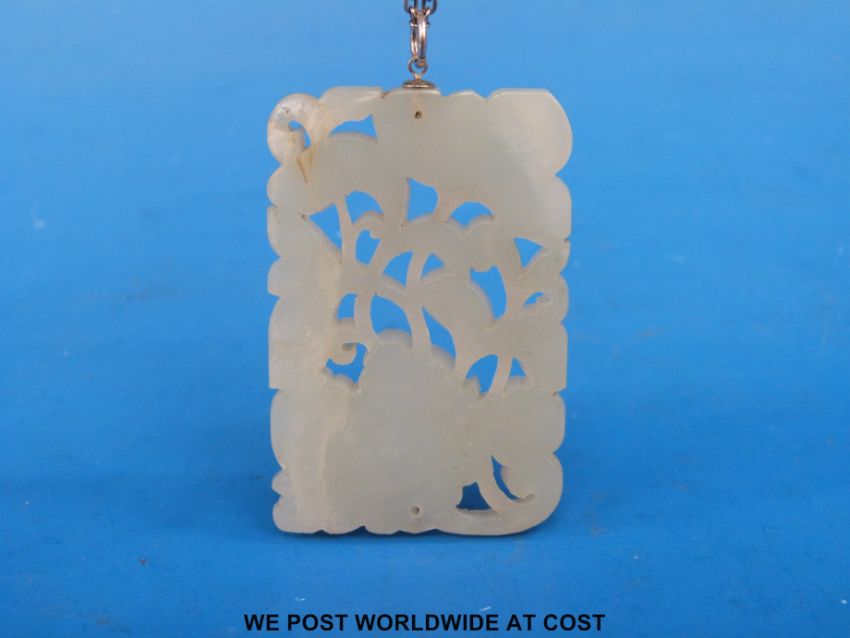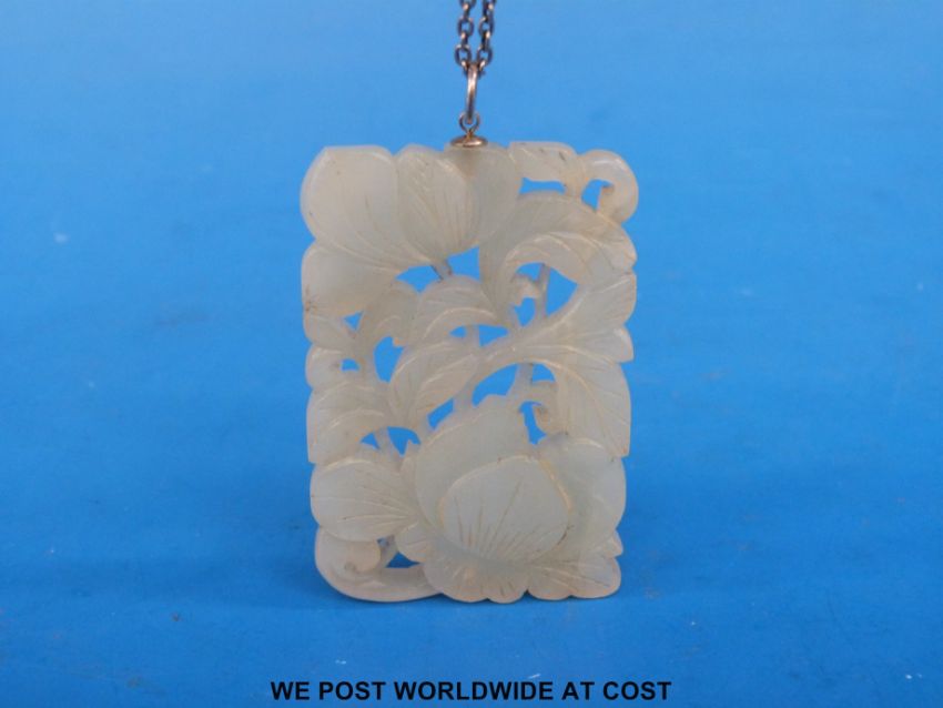 A white jade nephrite pendant carved with floral decoration
