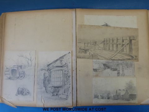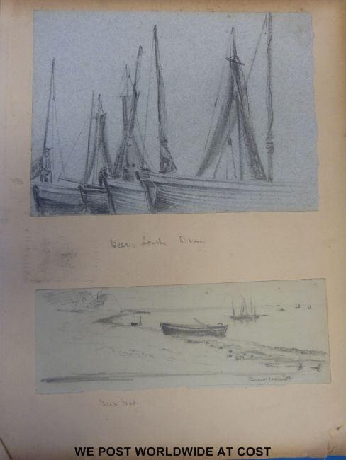 An album of late 19th/early 20th century pencil drawings including East Greenwich, Normandy, Picardy