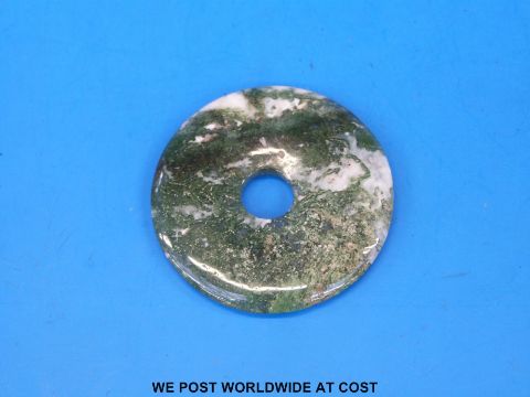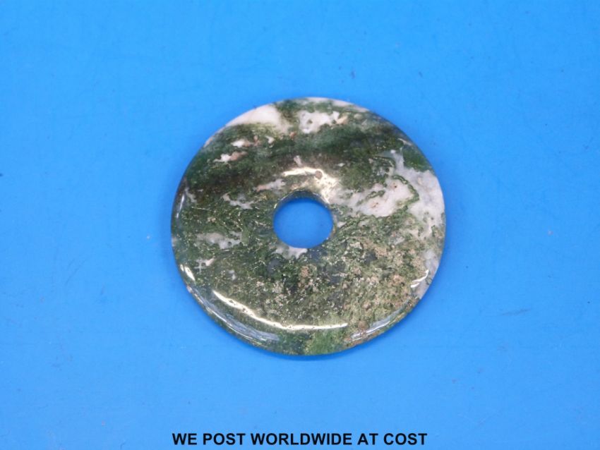 A Chinese spinach jade bi-disc (4.5cm in diameter)