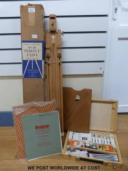 A boxed Winsor & Newton easel together with a printer's box and contents