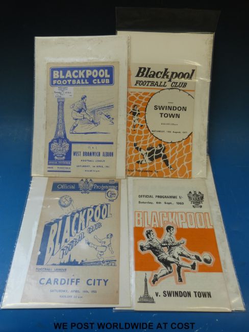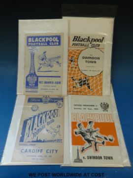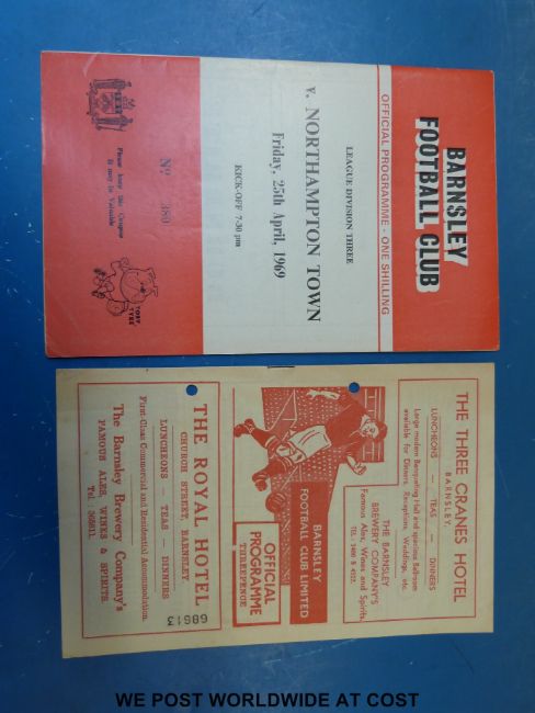 Football programmes Wigan Athletic, Oldham Athletic, Bradford City, Brentford, Blackburn Rovers, Bromley, Southampton, Bury, Bradford nothern, Barry Town, Stockport County, Woking Stevenage Borough, Ipswich, Leeds, Leicester, Middlesborough, Rotherham, Richard Athletic, Bolton, Barnsley Blackpool etc 1960's onwards