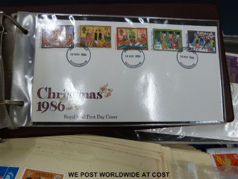 A Simplex album of all-world stamps, a stockbook and two albums of first day covers