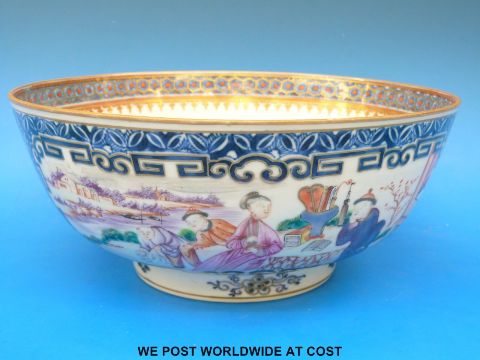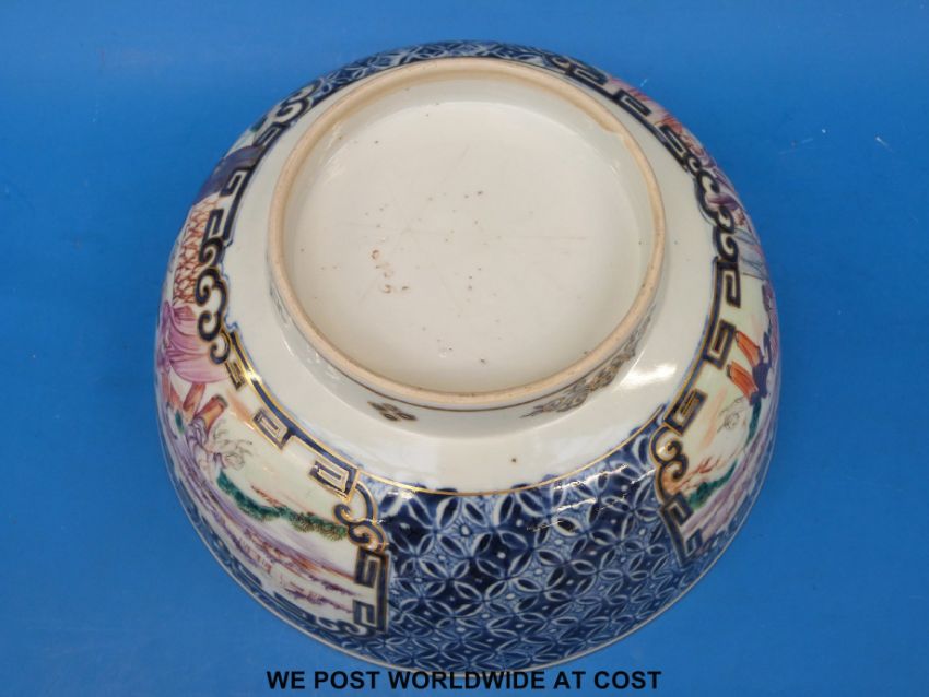 An 18thC Chinese Mandarin punch bowl with figural decoration on a blue ground (16.5cm diameter)