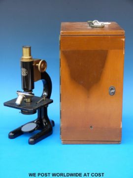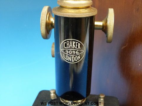 A cased microscope by C Baker with a selection of lenses