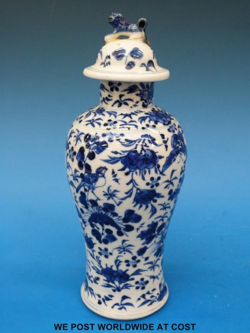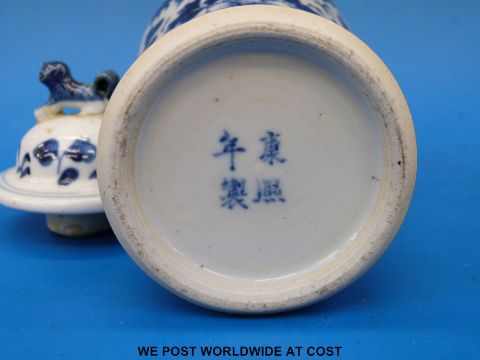 A 19thC blue and white Chinese vase with lid and four character mark (overall tall 23cm)