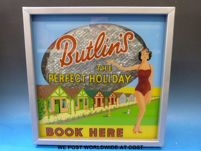 A Butlins 'book here' illuminated sign (W39cm)