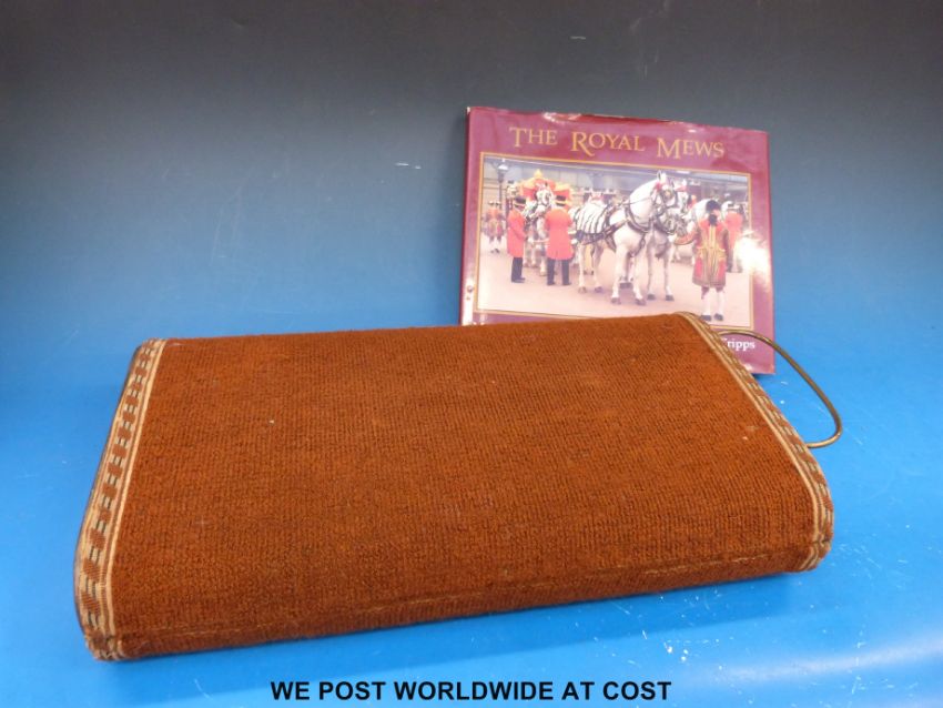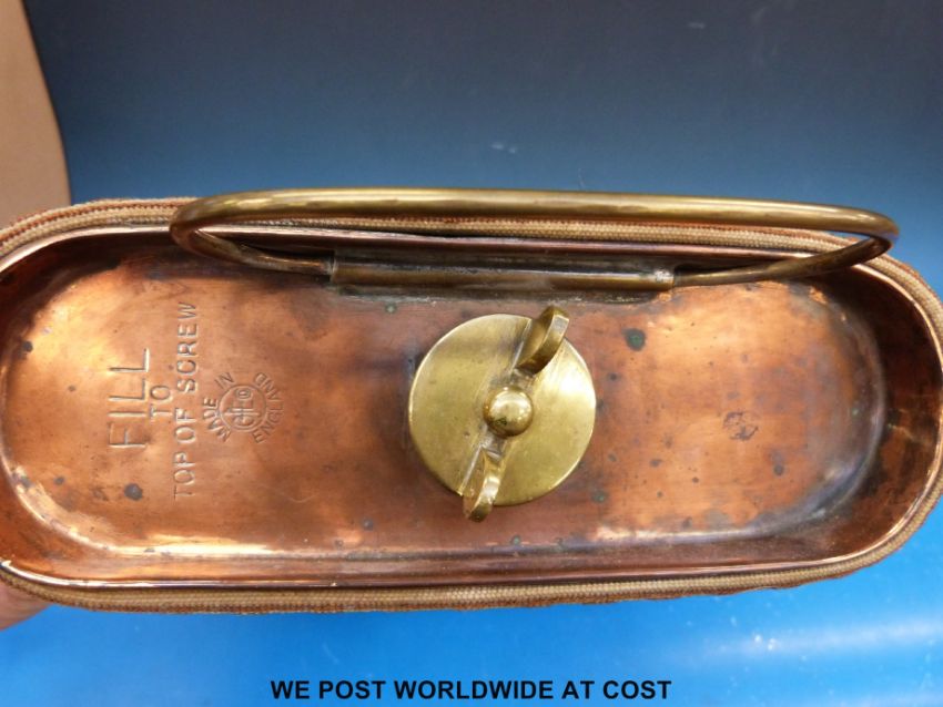 A copper carriage foot warmer (length 42cm) with related book