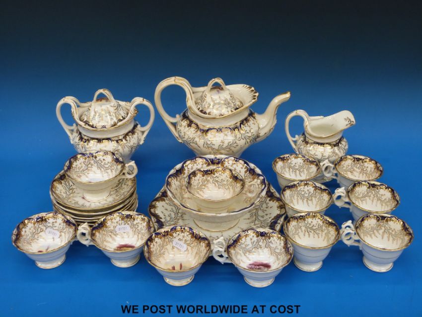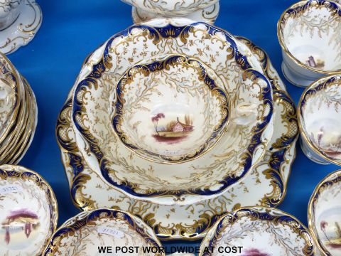 A complete 19thC Rockingham tea service with hand-decorated scenes of ruins. AUCTIONEER ANNOUNCE, PROBABLY ROCKINGHAM