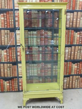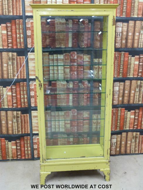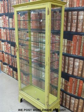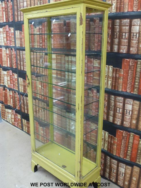 An Edwardian shop fitting cabinet with glass shelves (W72.5 x D35 x H167cm)