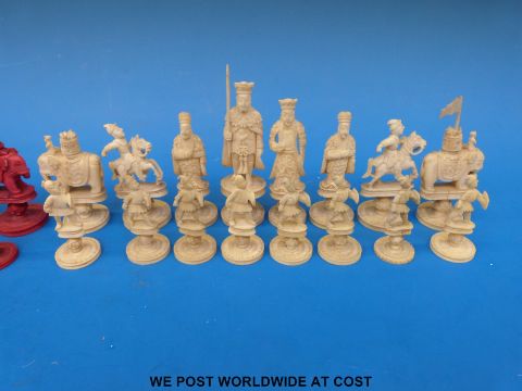 A Chinese carved ivory part chess set, c1900