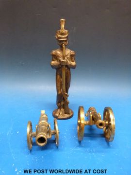 A Napoleonic style bronze / brass figure together with two brass cannon
