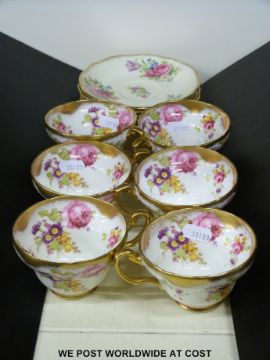 A collection of decorative teaware including Foley Tulip and hand-decorated floral items