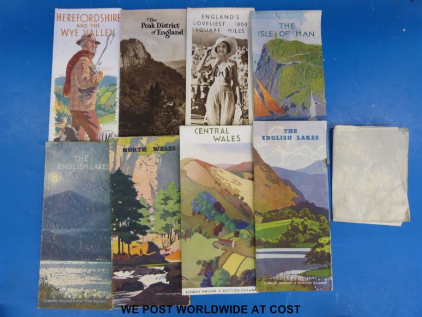 A collection of L.M.S Railway leaflets from the 1930s relating to the Peak District, North Wales, Herefordshire and Wye Valley, English Lakes etc