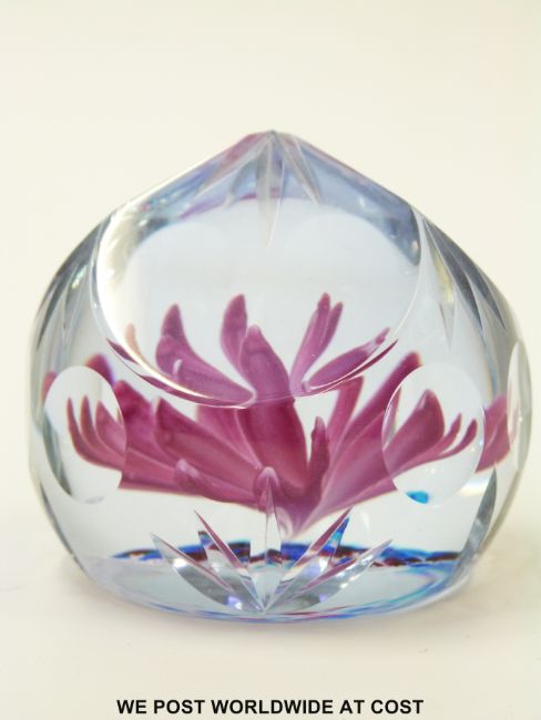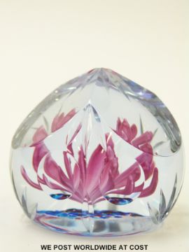 Caithness Ruby Trio faceted glass paperweight, limited edition 54 of 500 etched to base, 8cm in diameter in original box