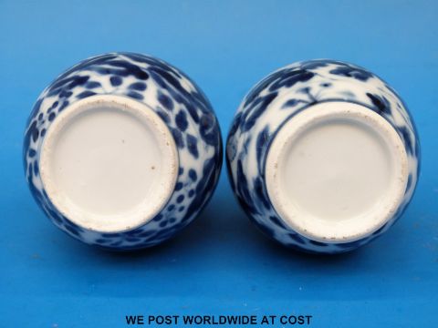 A pair of small 19thC Chinese blue and white vases (13cm tall)