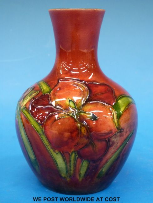 An early Moorcroft flambe vase decorated with Spring flowers(12.5cm tall)
