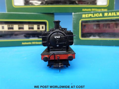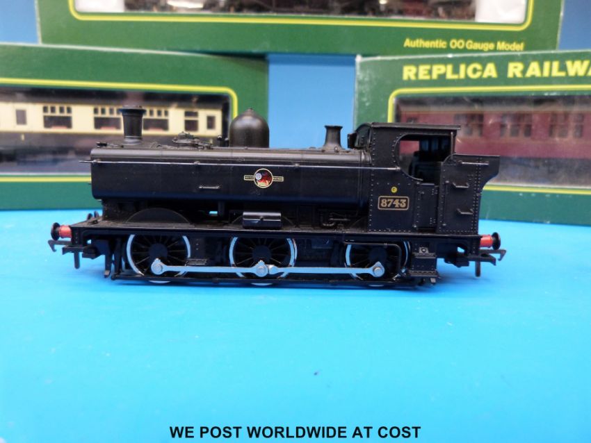 Replica Railways 00 gauge carriages together with two tank locomotives, all in original boxes