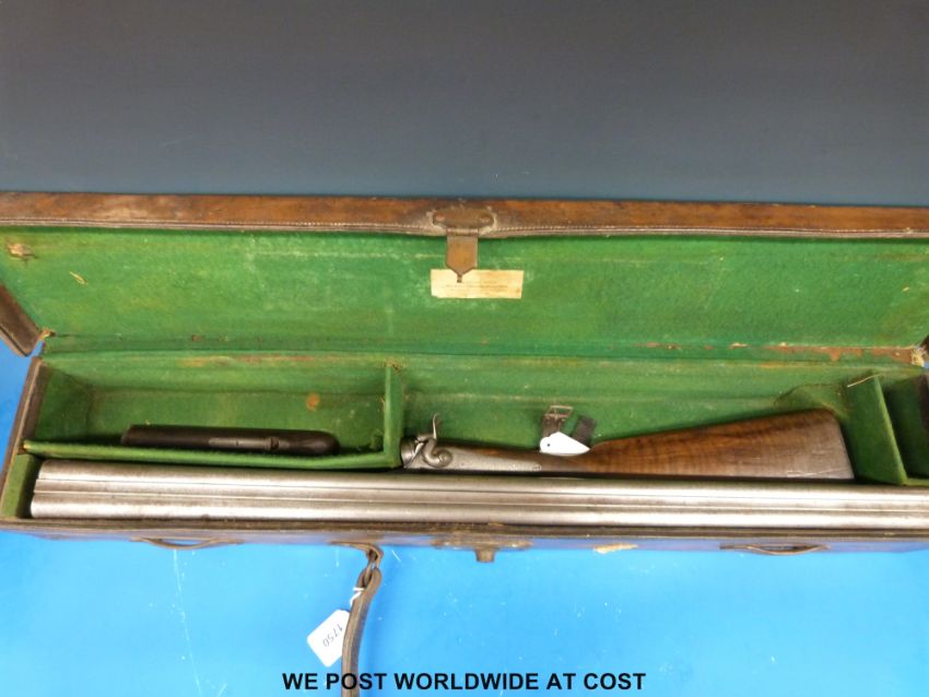 Holland & Holland 16 bore side by side hammer action shotgun with ornate scrolling engraving to the locks, hammers, rotary underlever and forend. The 30" Damascus barrels engraved to the rib Holland & Holland 98 New Bond Street London. In brown leather gun case with Edwinson & Green of Gloucester and Cheltenham label, overall length 107cm. Serial No. 5573. PLEASE NOTE THAT A VALID RELEVANT FIREARMS/SHOTGUN CERTIFICATE IS REQUIRED TO HANDLE/PURCHASE THIS ITEM.