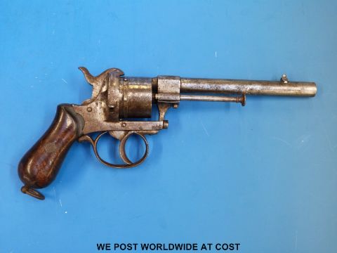 A 10mm rimfire six shot service revolver with walnut grip, c1850, overall length 29cm