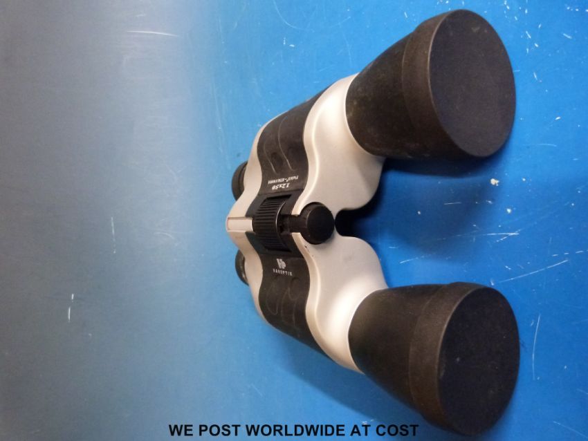 Four pairs of binoculars to include Hanoprik Nikon, together with a 10 x 25 monocular.
