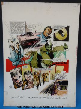 Six Million Dollar Man starring Lee Majors: full colour original art page by artist Martin Asbury, signed