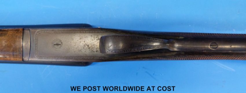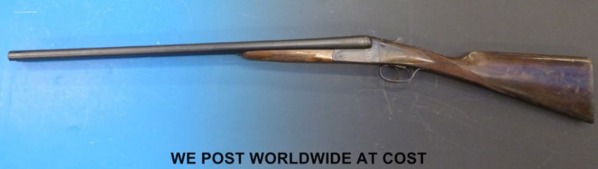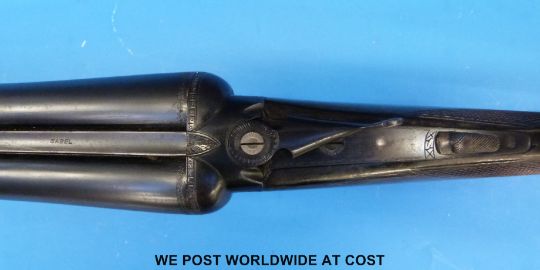 Sabel 12 bore side by side shotgun with 28" barrels named to rib Sabel. Overall length 115 cm, serial number PC67628 PLEASE NOTE THAT A VALID RELEVANT FIREARMS/SHOTGUN CERTIFICATE IS REQUIRED TO HANDLE/PURCHASE THIS ITEM.