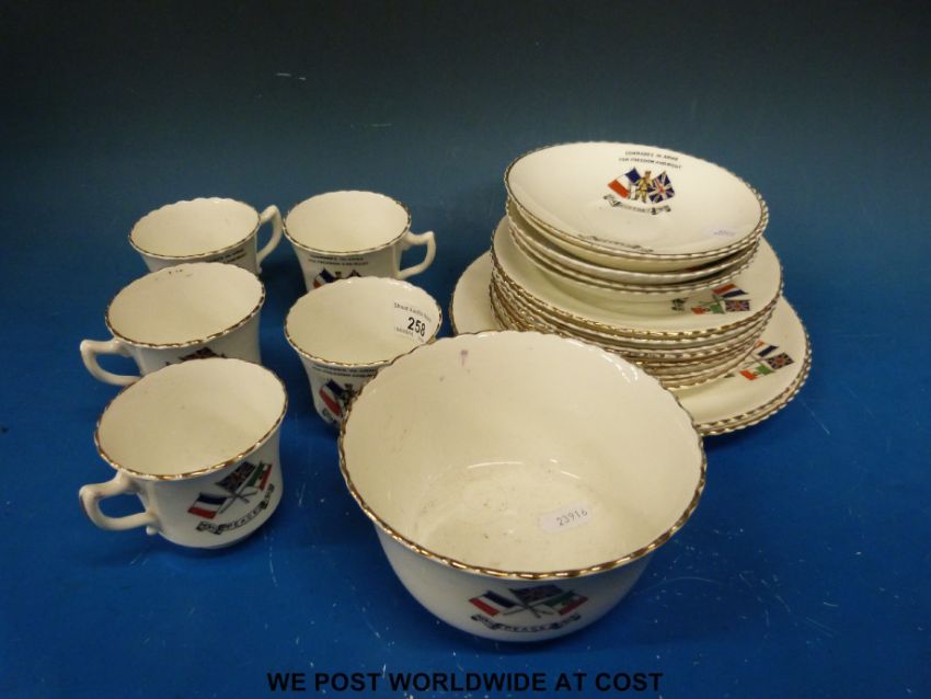 An 18thC Chinese export bowl, an early Samson bough pot and a collection of "Comrades in Arms" WWI ceramics