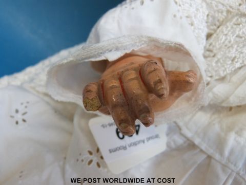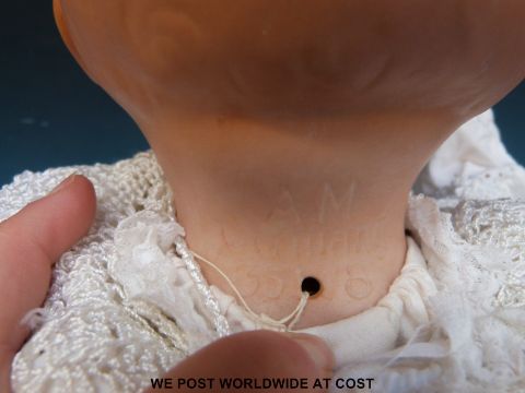 An Armand Marseille bisque headed doll with open mouth and weighted blue eyes, marked to back of neck AM Germany 351/8 (50cm tall)
