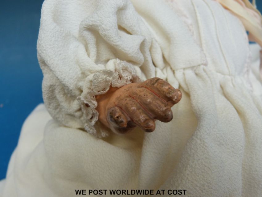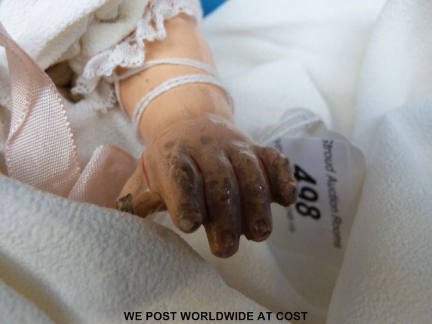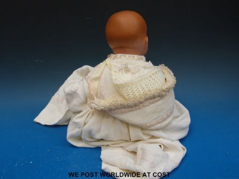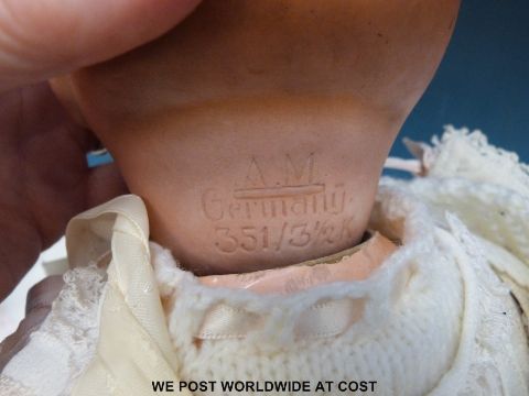 An Armand Marseille bisque headed doll with open mouth and weighted brown eyes, marked to back of neck AM Germany 351/3 1/2 K (40cm tall)