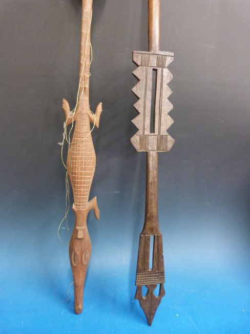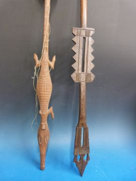 Two carved tribal paddles