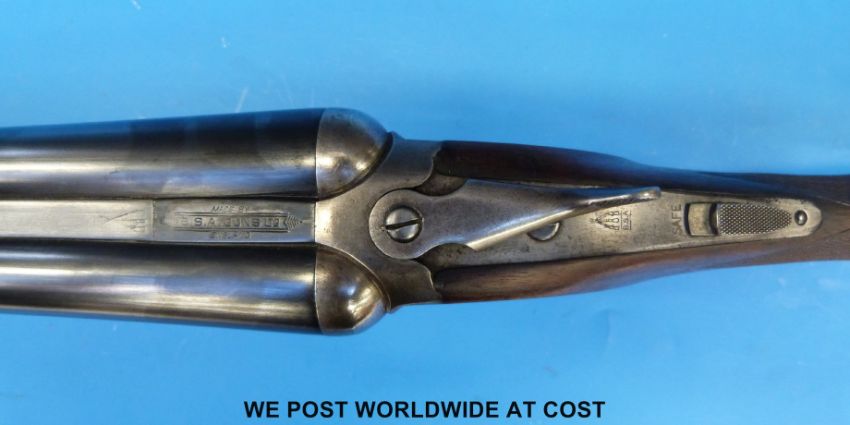 BSA 12-bore side-by-side shotgun with chequered semi-pistol grip and 28" barrels, named to rib 'made by BSA Guns, England'. Overall length 114cm, serial number 14694 PLEASE NOTE THAT A VALID RELEVANT FIREARMS/SHOTGUN CERTIFICATE IS REQUIRED TO HANDLE/PURCHASE THIS ITEM.