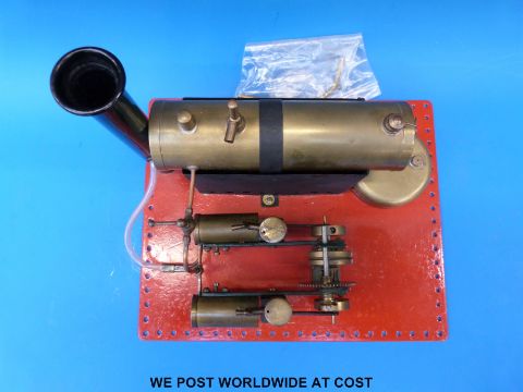 A Bowman models M122 live steam stationary steam engine, with twin cylinders regulator, whistle and methylated spirits burner