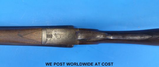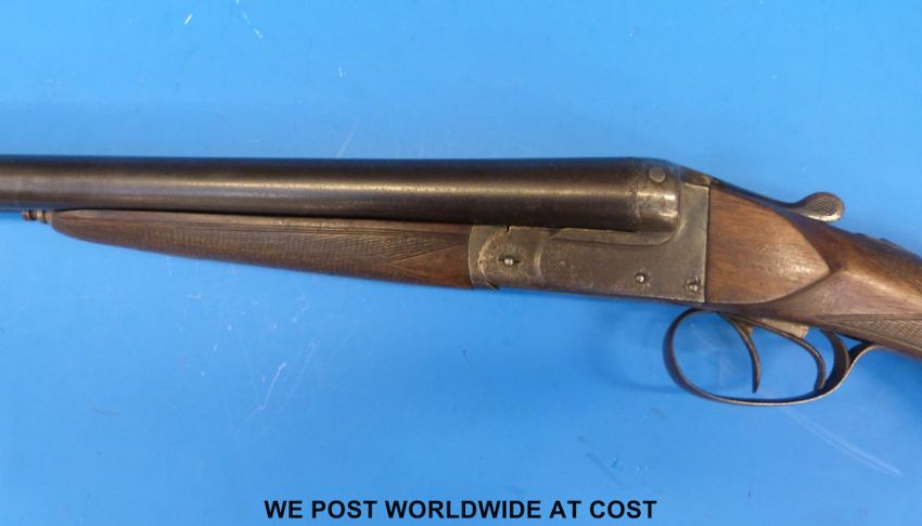 Unnamed Belgian 12 bore side by side shotgun with chequered semi-pistol grip and 30" barrels. Overall length 117 cm, serial number 117. PLEASE NOTE THAT A VALID RELEVANT FIREARMS/SHOTGUN CERTIFICATE IS REQUIRED TO HANDLE/PURCHASE THIS ITEM.