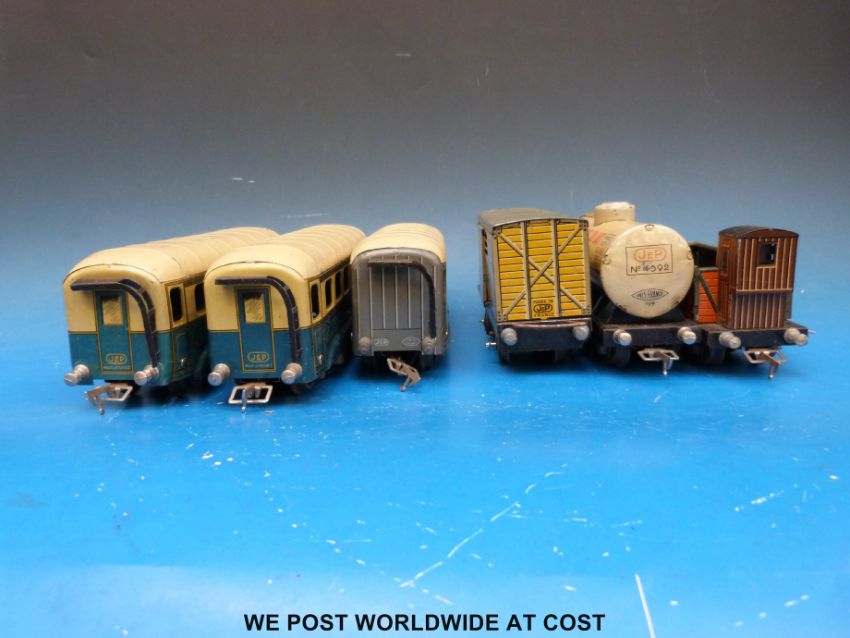 A selection of French JEP 0 gauge coaches and rolling stock to include two SNCF Pullman coaches, Stef tanker and three others