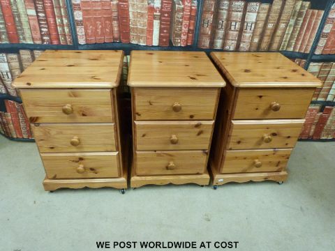 Three pine bedside chests (width 42cm)