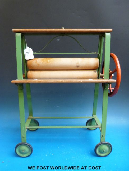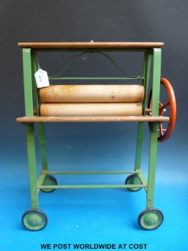 A 1951 Tri-ang children's washing set comprising mangle, clothes horse, galvanised tub, bucket and scrubbing board
