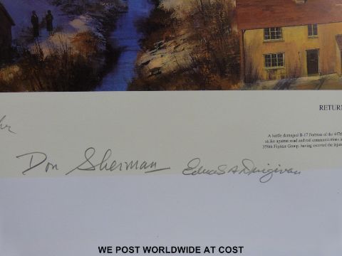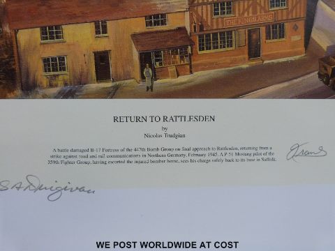 Two signed limited edition 51/350 Anthony Saunders 'Day of Infamy', (41 cm x 62 cm) and Nicolas Trudgeon 'Return to Rattlesden' (41 cm x 62 cm) both signed by artist and crew with certificates