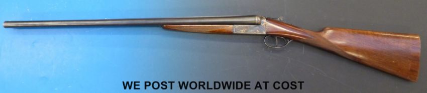 A 12 bore side by side Spanish boxlock shotgun with slip hard case and two hammer gun stocks and mechanisms. PLEASE NOTE THAT A VALID RELEVANT FIREARMS/SHOTGUN CERTIFICATE IS REQUIRED TO HANDLE/PURCHASE THIS ITEM.