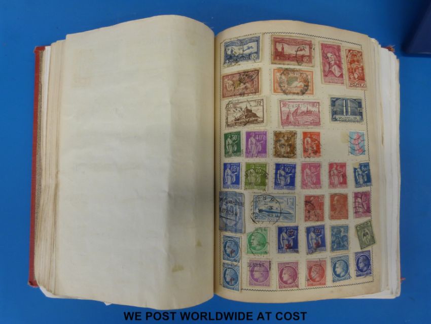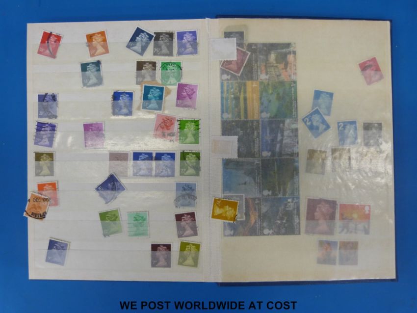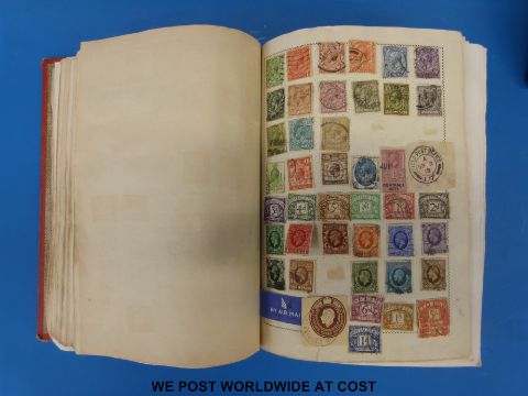 A Moveleaf album of all world stamps, a first day cover album, stockbooks etc together with an envelope of Kensitas silk national flags