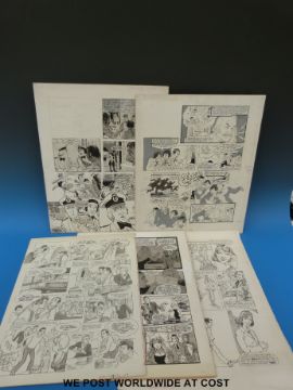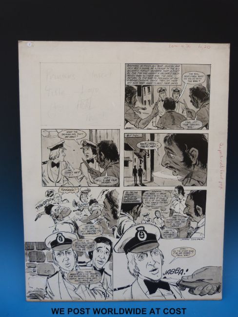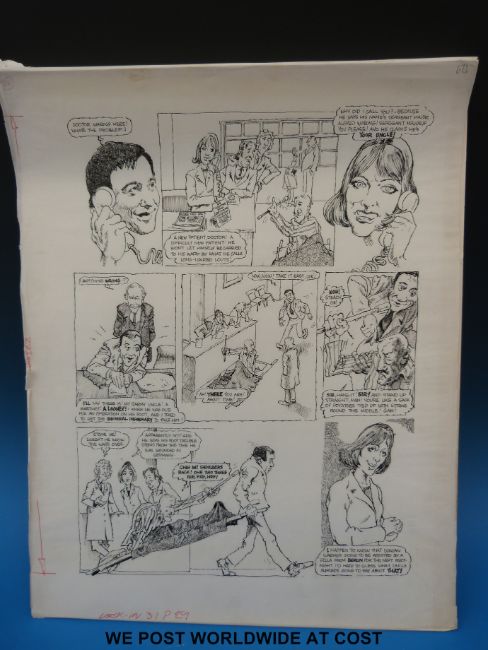Doctor at Sea/ On the Go sitcom starring Barry Evans, George Leyton, Robin Nedwell: five black and white original art pages by artist Alan Parry, Arthur Ranson, Bill Titcombe, John Cooper, two signed by the artist (5)