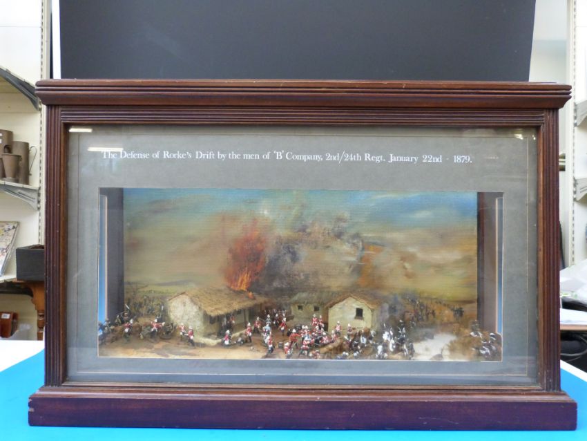 A cased diorama display of The Defence of Rorke's Drift by the men of 'B' company 2nd/24th Regiment, January 22nd 1879. (W 77 x D26 x L49 cms)