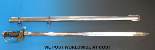 A replica 1854 pattern infantry officer's sword in metal scabbard