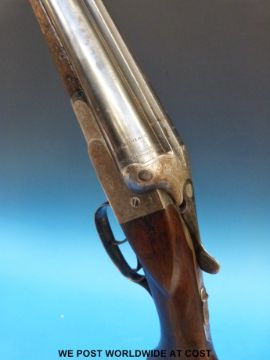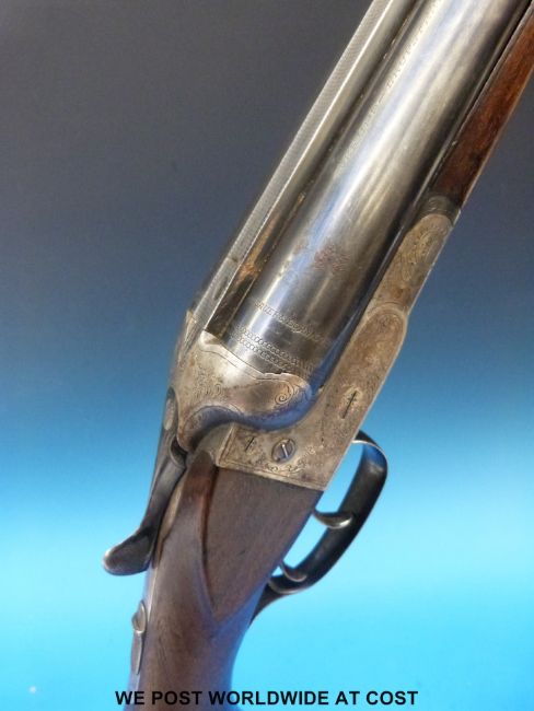 J.P Sauer & Son 12 bore side by side shotgun with named locks, engraving of a dog to the underside, semi-pistol grip, double triggers and 28.5" barrels. Overall length 113 cm, serial number 284816 PLEASE NOTE THAT A VALID RELEVANT FIREARMS/SHOTGUN CERTIFICATE IS REQUIRED TO HANDLE/PURCHASE THIS ITEM.