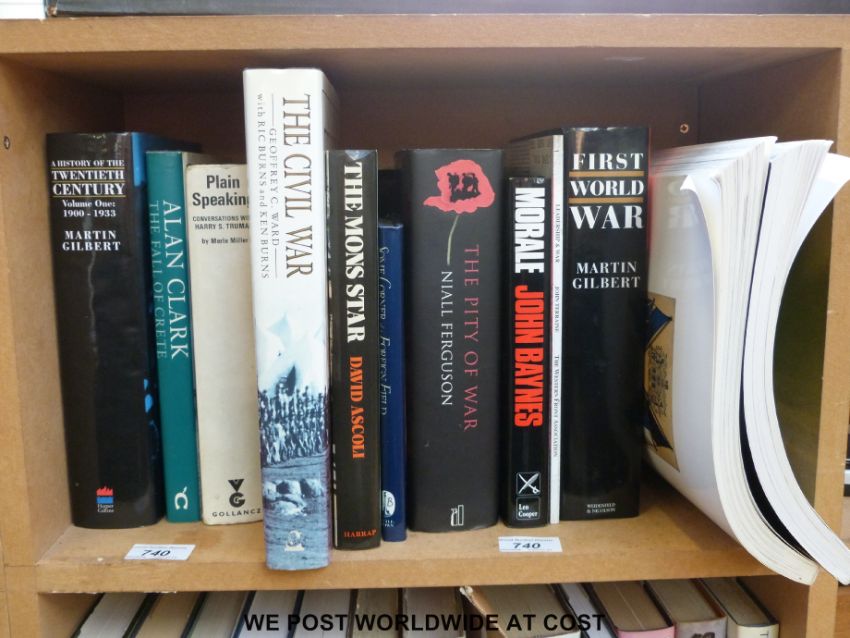 A sundry collection of war-related titles including Martin Gilbert, 'First World War', John Baynes, 'Morale: A study of Men and Courage', and Niall Ferguson, 'The Pity of War', the lot also includes Martin Gilbert, 'A History of the Twentieth Century' and Merle Miller, 'Plain Speaking'.