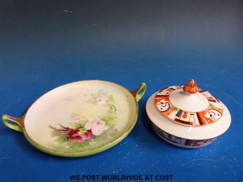 An early Rosenthal covered dish in the Excelsior design, 1929 50th anniversary piece together with an early Rosenthal shallow two-handled dish c1910 decorated with roses, 22 cm diameter.